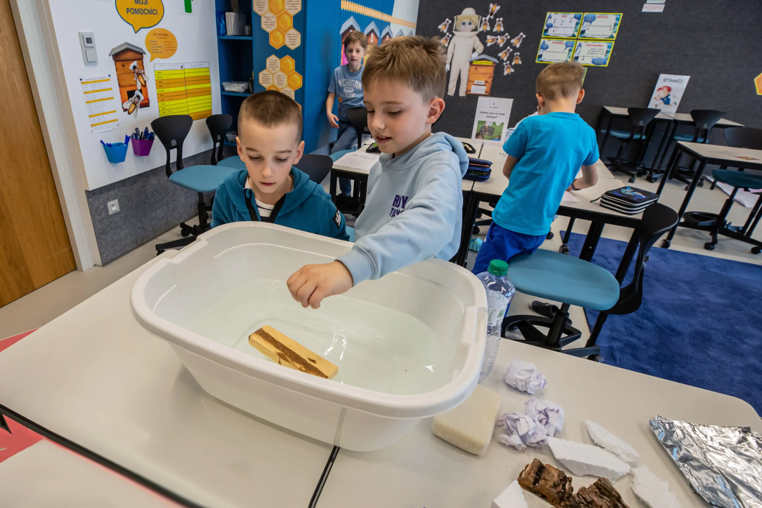 🏊🏼♂️🏊🏻♀️ Pri plaveckých hodinách ťaháme za jeden povraz a posúvame svoje limity v tímovej výzve, na chémii zase skúmame jej vlastnosti a hľadáme súvislosti.